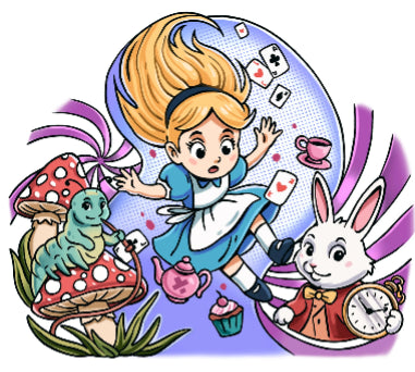 Wonderland is a whimsical temporary tattoo set that brings the magic to life. Follow Alice as she tumbles down, down, down through a swirl of curious things—and lands at the wackiest tea party ever, where the table's full of chatter, and it's always time for tea. Packed with playful details and storybook charm, this tattoo is perfect for daydreamers, dress-up lovers, and anyone who's ever asked, "What if?"